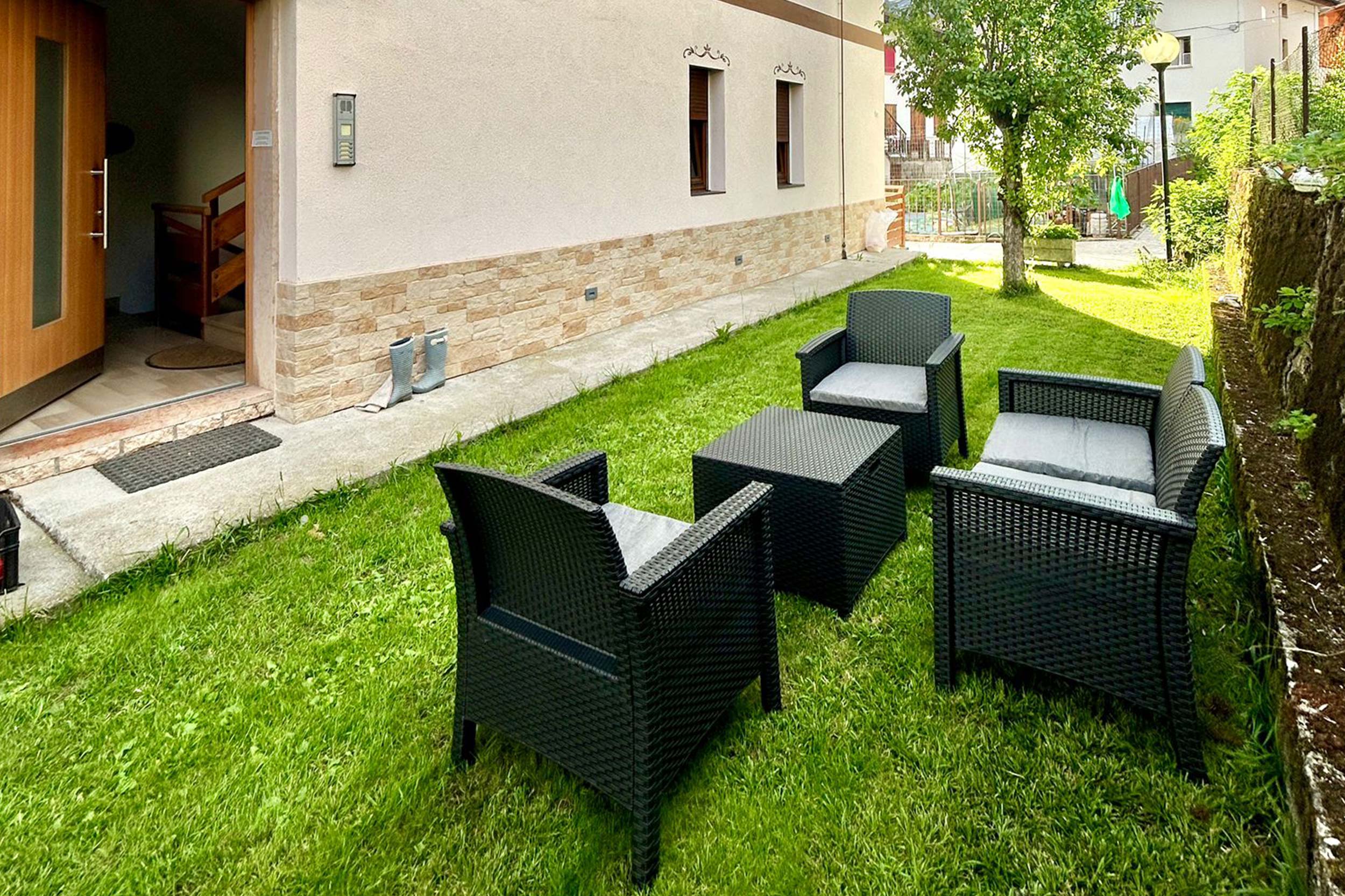 Casa Da Rin dispone anche di un bel giardino, in parte di pertinenza dell’appartamento al primo piano per quattro persone, in parte ad uso comune.